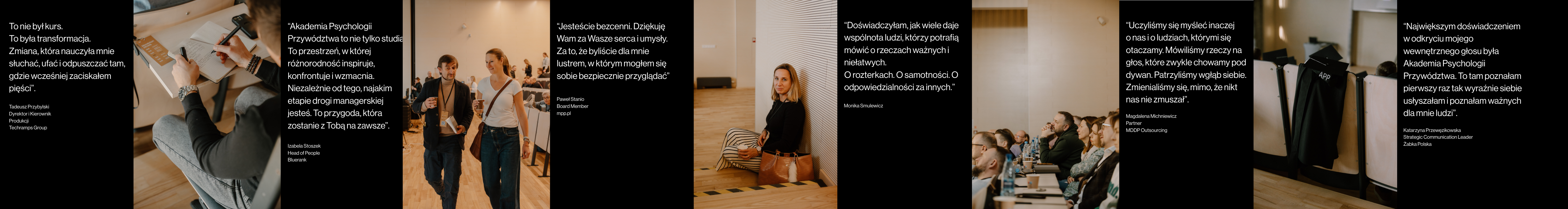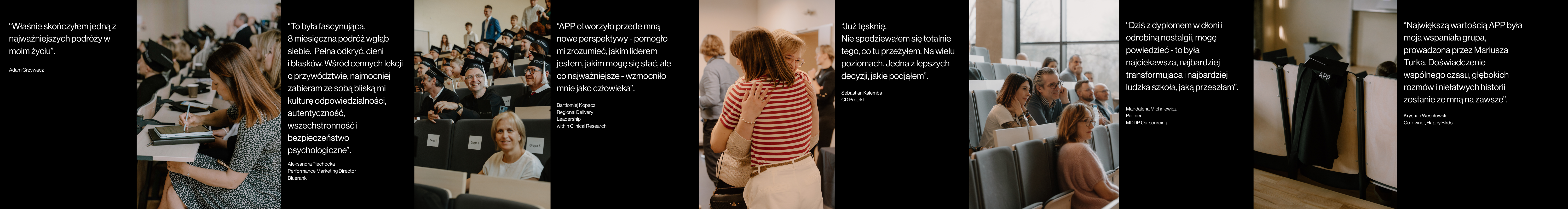 Akademia Psychologii Przywództwa od 16 lat wspiera zarządzających właścicieli, top managerów i osoby przygotowywane do tych ról w zdobywaniu wiedzy psychologicznej, pogłębianiu samoświadomości i refleksji nad własnym stylem przywództwa. To proces, który przekłada się na realną skuteczność biznesową i morale zespołów. Do tej pory ukończyło ją już ponad 1200 Liderek i Liderów. APP pokazuje, że rozwój przywództwa jutra staje się jednocześnie wsparciem w wyzwaniach dnia dzisiejszego – od niepewności rynkowej, przez transformacje organizacyjne, po budowanie odporności i zaangażowania ludzi.