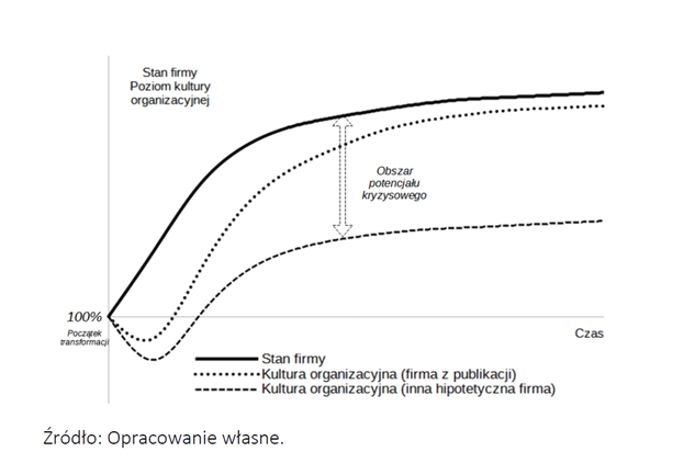 Wierzę w prosty wykres. Mamy krzywą zmiany (rewolucja w procesach, strukturze) i krzywą kultury organizacyjnej (zaangażowanie ludzi, ich mentalność). Zazwyczaj zmiana pędzi do góry, a ludzie zostają w tyle. Powstaje „gap” – luka. Im większa ta luka, tym większe straty: kradzieże, odejścia, sabotaż.